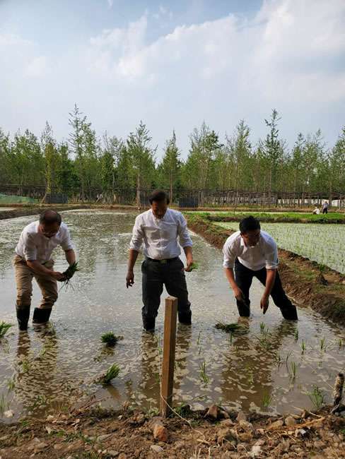日前,开云手机站官方版网站登录入口-开云(中国)董事长梁雨、总裁谢俊率集团高级管理人员来到位于北京西四环外的锦绣大地生态园,在景色迷人的玉泉山山下,同志们挽起裤脚跃进田里,生态园农业技术员一边弓腰示范,一边讲解道“插秧是个技术活,将秧苗窝在虎口处,既要轻又要稳,用巧劲儿将秧苗抛在泥里,不能抛得太深,又要确保植保灌溉时,秧苗不漂浮在水面上。”