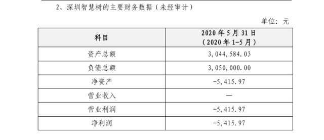 在公告中,扬州英锐电子商务咨询有限公司科技披露了深圳智慧树的主要财务数据(未经审计),如下图所示。